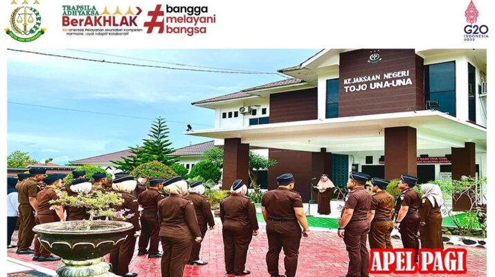 Pada hari Senin tanggal 21 November 2022, Sekira pukul 08.00 WITA bertempat di Kejaksaan Negeri Tojo Una Una, telah dilaksanakan Apel Pagi. Kepala Seksi Pidana Umum Endang Dwi Astuti, S.H bertindak sebagai penerima apel dan diikuti oleh para Kasi/Kasubag dan seluruh pegawai Kejaksaan Negeri Tojo Una-Una.