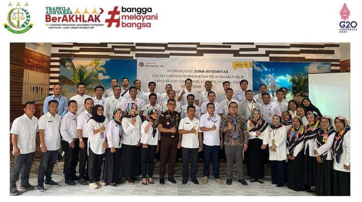 Pada hari Rabu tanggal 23 November 2022 pukul 09.00 WITA sd. selesai, Kepala Kejaksaan Negeri Tojo Una-Una yang diwakili oleh Kepala Seksi Intelijen La Ode Muhammad Nuzul , SH menghadiri undangan kegiatan sebagai narasumber “INTERNALISASI ZONA INTEGRITAS DALAM RANGKA PENINGKATAN PELAYANAN PUBLIK YANG BERSIH DAN BEBAS KORUPSI, KOLUSI, DAN NEPOTISME (KKN)”, yang diselenggarakan oleh Kantor Pertanahan Kabupaten Tojo Una-Una.