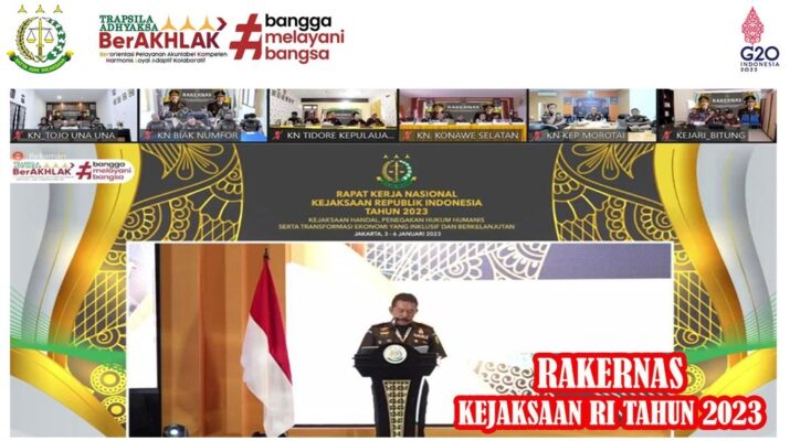 Pada hari Rabu, 04 Januari 2023 Kepala Kejaksaan Negeri Tojo Una-Una bersama Kasubagbin dan Para Kasi mengikuti Rapat Kerja Nasional (Rakernas) Kejaksaan Republik Indonesia Tahun 2023 dengan tema “Kejaksaan Handal, Penegakan Hukum Humanis serta Transformasi Ekonomi yang Inklusif dan Berkelanjutan” yang dipimpin oleh Jaksa Agung Republik Indonesia secara virtual.