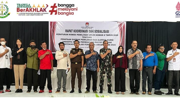 Pada hari Rabu tanggal 23 November 2022 pukul 09.00 WITA sd. selesai, Kepala Kejaksaan Negeri Tojo Una-Una yang diwakili oleh Jaksa Fungsional Kejaksaan Negeri Tojo Una-Una Muh. Dhimas Trisakti, SH menghadiri undangan kegiatan “RAPAT KOORDINASI PERATURAN KOMISI PEMILIHAN UMUM NOMOR 6 TAHUN 2022 TENTANG PENATAAN DAERAH PEMILIHAN DAN ALOKASI KURSI ANGGOTA DEWAN PERWAKILAN RAKYAT DAERAH KABUPAATEN/ KOTA DALAM PEMILIHAN UMUM TAHUN 20224”, yang diselenggarakan oleh KPU Kabupaten Tojo Una-Una.